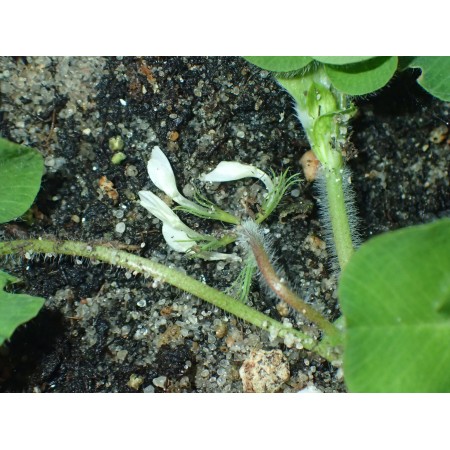 This is an interesting species of clover that produces underground pods – similar to the subterranean nut (Arachis hypogaea), also known as the "peanut." However, in this plant, it's not the seeds that are edible, but the leaves, which can be consumed in moderate quantities (raw or cooked). Subterranean clover grows wild in temperate and subtropical regions of Europe, northern Africa, and western Asia. It easily overwinters here near our home (in zones 6/7) in the loose (not dug into the ground) building plastic containers in which we grow it. And frosts can be severe – (-15) or (-20) degrees Celsius – occur almost every winter. It's best to sow the seeds in their permanent location in spring. A rarity in trading. A packet of 15 seeds (not pods) is available for sale.
