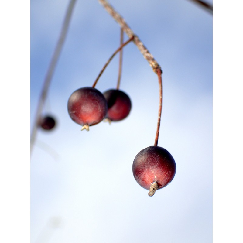 Huckberries are long-lived trees that produce very hard ("iron") wood and edible fruit, which are used to make sweet flour or excellent wines. They are close cousins of elms. Chinese Huckberry is a small, shrubby tree commonly grown in California for ornamental purposes. This species usually produces very small fruit, but this large-fruited form was discovered years ago by a seed dealer in California. The fruit is about 8-10 mm in diameter and the color is first orange, then burgundy-brown. The tree is self-pollinating and bears fruit annually in our garden in Poland. It comes into fruiting early when grown from seed (after a few years, when it is about 2.5-3 m (= 8-10 feet). Seeds should be sown in autumn in a cool cellar or in the garden (and then the sowing place should be mulched). They germinate irregularly and slowly in the first or second (sometimes even the third) spring. Fresh seeds were harvested in November 2025. Packet of 12 seeds. Only a few packages is available.