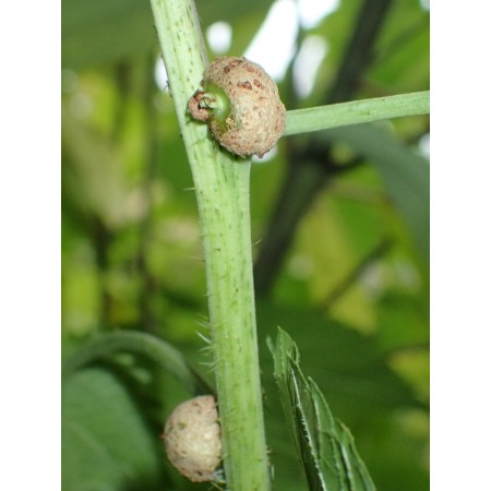 An East Asian, exceptionally beautiful perennial native to regions such as China, Japan and Myanmar. The accession for sale here comes from temperate regions of Japan, making it very frost-resistant. It winters well in zones 7/8, and even 6, if well-covered (it overwinters better than the related Laportea bulbifera). This plant is similar to L. bulbifera and also produces bulbs in the leaf axils in autumn, but fewer in number. It is also more ornamental. The leaves are also edible – spinach made from its leaves is extremely tasty and highly prized. This year, we only sell seeds, not bulbs, of this species. They should be sown in autumn in a cool cellar or stratified in moist sand over winter. We sell a pack of 7 fresh seeds (not bulbs). Only a few packs are available.