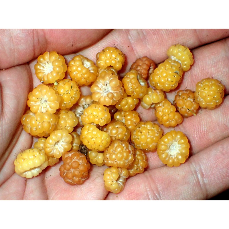 A rare, hard-to-find in trading form of the American black raspberry that produces yellow fruit. The fruit also has a distinct flavor (similar to pineapple). The bushes are thorny, spread quickly, and form thickets. They bear abundant fruit (they are self-pollinating). They are very frost-resistant. The plant retains its characteristics when grown from seed. Seeds should be sown in autumn or early winter in a cool basement, or stratified in moist sand in the refrigerator. Packet of 20 fresh seeds. Only a few packets are available.