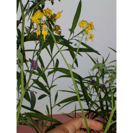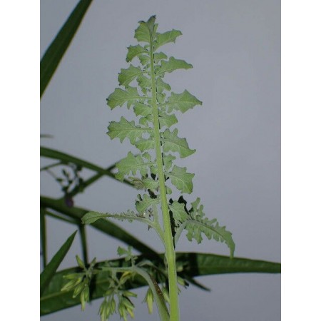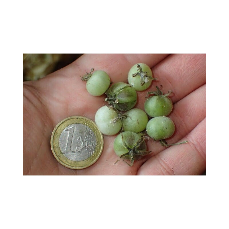 This is (sub-)tropical perennial about 1m (=3ft) tall, with silver-gray leaves and stems (very fragile). An accession native to Chile. Fruits are 1-1,5cm (= 0,4-0,6 inch) diameter, pale green, densely soft pubescent, tasty. Seeds harvested from open pollinated plants. Sow the seeds surface.