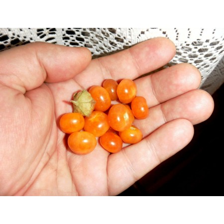 This is shruby tropical perennial (to about 6ft = 1,8m tall) which can be grown as annual in temperate areas. It creates fuzzy leaves, lovely blue flowers and delicious edible aromatic orange fruits. Rarity. Native to Peru. Possible Incan agricultural relict. Plant easy to growing but sometimes can be difficult to germinate (GA3 - 2000 ppm by 24 hours can realy help). Sow the seeds surface and keep moist in light place but not in full sun. Young seedlings are susceptible to roting, but older plants are fungi-disease resistant. Package 25 fresh seeds.