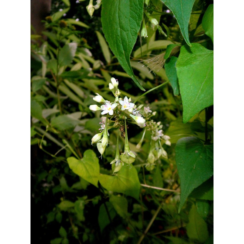 This is large (often more than 3 m = 10 ft tall), dense climber which creates underground perennial tuberous rhizome to 15cm (= 6 inch) diameter. The flowers are white, numerous - in summer. Fruits 1 cm long thorny nutlets - in summer/autumn. This is very frost hardy perennial (probably to zones 5/7) native to central China. It resembles a Caucasian spinach (Hablitzia tamnoides) in appearance, but this is not edible, but only medicinal. Blooms and fruits in first year from seeds, if sown early. Easy from seeds (they should be sown shallowly and do not need any pre-treatment). Rarity. Package 15 fresh seeds