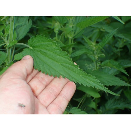 An unusual vegetable which can be used especialy in raw state (because the leaves do not burn). Urtica galeopsifolia it is perennial about 2m tall. Its leaves and tops of shoots have not stinging hairs, but lower parts of stems have them (and burn when touched as stinging nettle - U. dioica). This species has also very long and narrow, pubescent leaves - in comparison to wider and shorter leaves of stinging nettle. It is also later in flowers - in mid July (U. dioica in mid June, so one month earlier) and has first inflorescences on 13-22 node since base (U. dioica on 7-14 node). From also not burning other species - Urtica pubescens, it differs by long internodes in top of the shoots. Fen Nettle does not grow on synanthropic sites - it grows only on natural communities - on winter-flooded wet natural thickets, edges of rivers, wet woodlands etc. U. galeopsifolia is diploid. U. dioica is tetraploid and it is probably hybrid of U. galeopsifolia and other nettle species. It is unknown if it is rare species or common one in wild state. It grows in western, central and eastern Europe, the most often on the south of latitude 60' N (so it is very frost hardy). The seeds probably need a cold (8 weeks of cold stratification or sowing in cool place in autumn, winter or maybe early spring) to germination. Sow the seeds surface. Package 50 fresh seeds (harvested in Autumn 2024).
