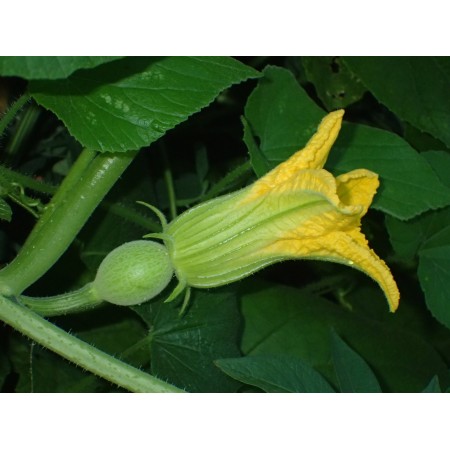 We don't know if our hybrid is fertile. We sowed five of its seeds to see if they would germinate, even though it was quite late for sowing pumpkins. All five germinated. We're very curious to see if the hybrid will produce fruit. ...this could be a stepping stone to obtaining a perennial, edible pumpkin, but time will tell if we or any of you will succeed in achieving this goal. For now, we are hopeful because the plants are flowering - they are producing both female and male flowers.