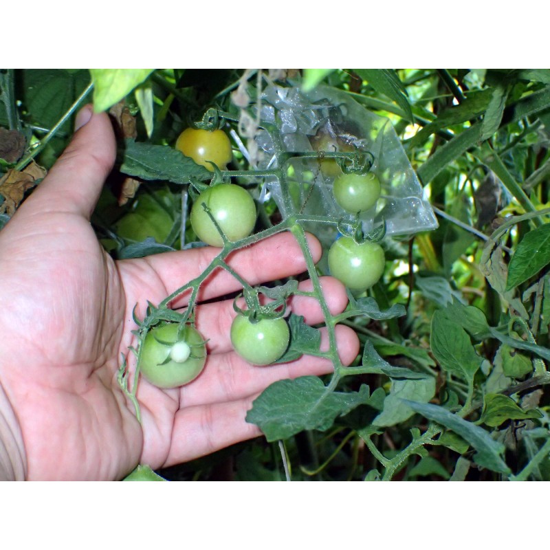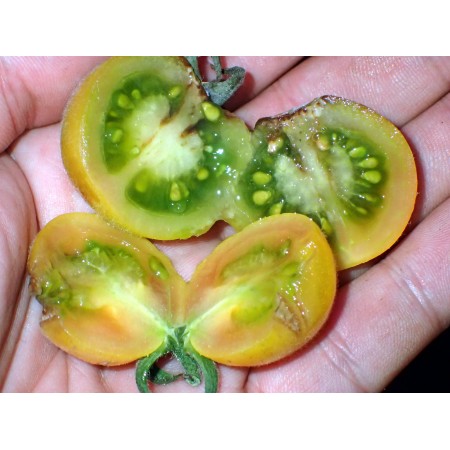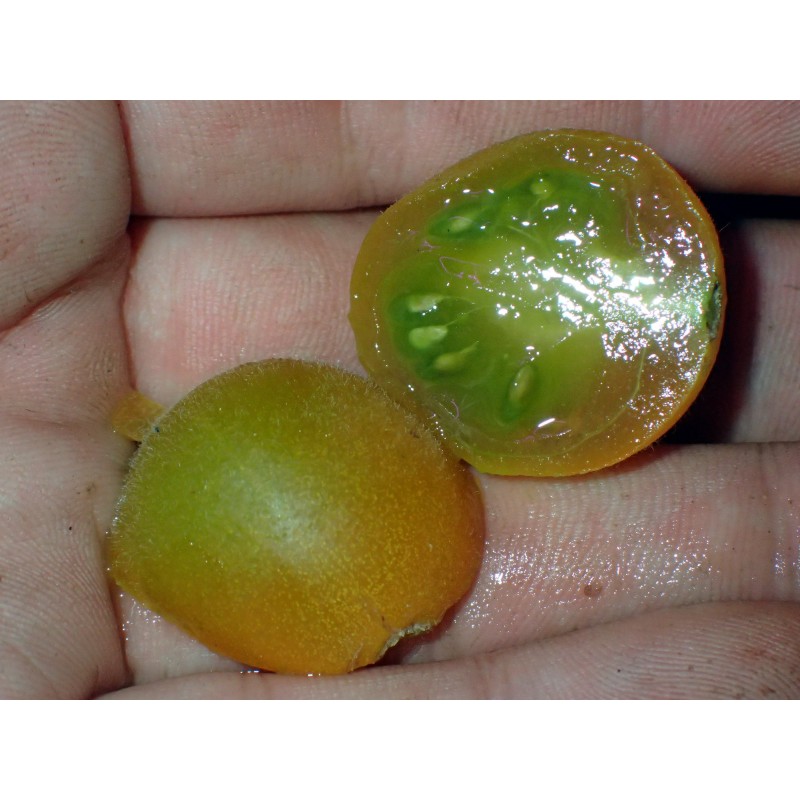 This variety was created by crossing a hybrid of the cultivated tomato with Solanum habrochaites and a hybrid we created of three other wild tomato species and a wild form of the cultivated tomato (a total of 5 species) We don't know the stability of this hybrid. The plant is self-compatible, so a single plant is sufficient for fruiting. The fruit of this variety is approximately 2.5 cm (1 inch) in size. They have a unique, greenish-brown color, are hairy, and have a very unique flavor—completely different from known tomato varieties. 'Braliant Idiot' has about 30% of its genes derived from the cultivated tomato. We're offering seeds here that will produce F2 generation plants. The photos show F1 plants—those that produced F2 seeds. The F1 plants were fully resistant to potato blight. Whether this trait will persist in subsequent generations—we don't know. Creating this variety took years of our working. The fruit of this variety is worth trying – the taste is truly indescribable, they're extraordinary. If you're passionate about growing unique tomato varieties, you've come to the right place. This is our new creation - we are the only sellers of this variety. The package contains 8 fresh seeds.