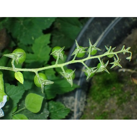 This variety was created by crossing a wild redcurrant tomato (Solanum pimpinellifolium) with a hybrid we created of two other wild tomato species – the Peruvian tomato (S. peruvianum) and the "Pennellii" tomato (S. pennellii). We've already sown F2 seeds, and the resulting plants were very uniform, but we don't know what the results will be in subsequent generations (and the stability of this variety is also unknown). The plant is self-compatible, so a single plant is sufficient for fruiting. The fruit of this variety is approximately 1-1.5 cm (0.4-0.6 in) in size. A distinctive feature is the presence of bracts in some inflorescences – a trait derived from the Peruvian tomato and the "Pennellii" tomato. 'Little Victor' (in Polish language 'Wikuś')nhas 100% of its genes derived from wild tomatoes. Here we offer seeds that will produce F2 generation plants. The photos show F1 plants—those that produced F2 seeds. The F1 plants were quite resistant to late blight, but not completely. We don't know what the results will be in subsequent generations. Creating this variety took a lot of work and time. The flavor of this variety's fruit is similar to that of regular tomatoes, but better. If you're passionate about growing unusual tomato varieties, you've come to the right place. This is our new creation—we are the only sellers of this variety. The package contains 12 fresh seeds.