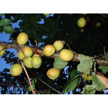 This is a wild apricot species native to northern China. Unlike cultivated apricots, it is very frost-hardy and more disease-resistant. The fruit is small but very aromatic. The Manchurian apricot is sometimes cultivated as a fruit tree (fruit for fresh eating or for making excellent liqueurs, preserves, etc.) or used as a highly valued rootstock for grafting cultivated apricots. Seeds should be sown outdoors in autumn or in a cool cellar, or alternatively cold stratified in moist sand in the fridge for 2-3 months. They were harvested from our garden in the Summer of 2025. A packet of 8 large seeds is available for sale.