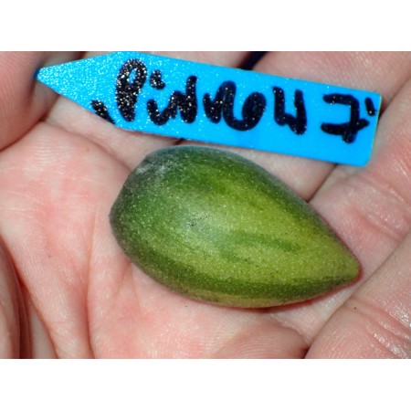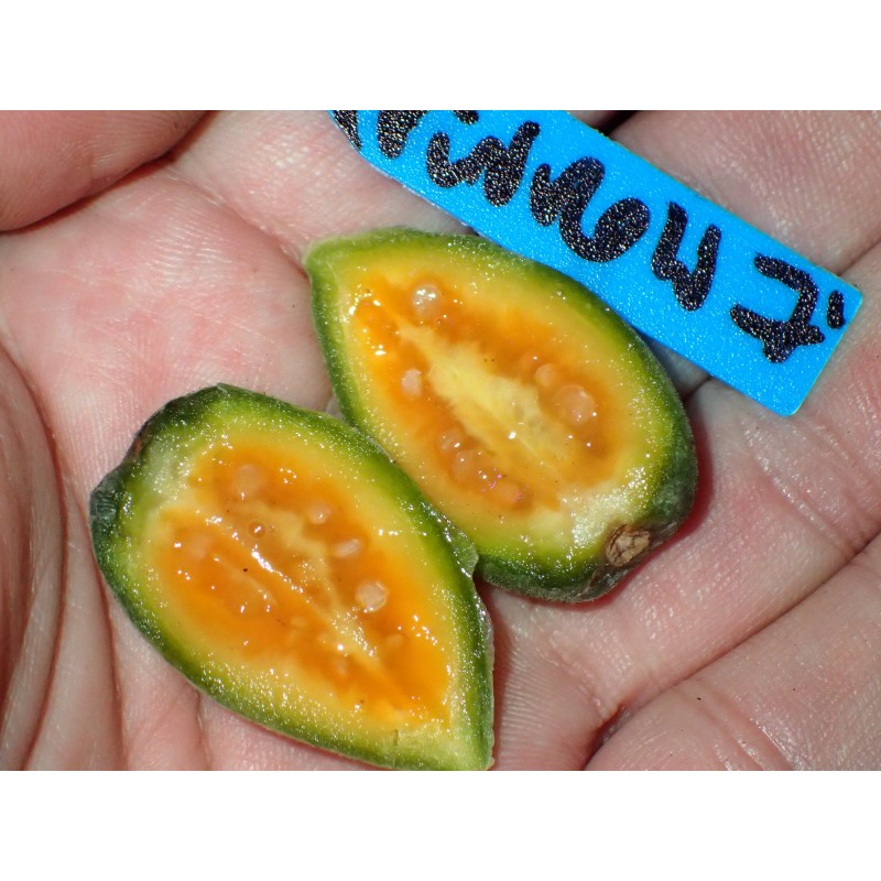 Są to nasiona zebrane z drugiej (poza 'Pinczow 2') naszej najsmaczniejszej, nowszej, odmiany naszych mieszańców pomidorów drzewiastych - Hardy Tamarillo's - o nazwie roboczej 'Pinczow 7'. Nasiona są zapylane w warunkach otwartych (nie ręcznie) - zbierane z odmiany 'Pinczow 7' i zapylane przez dowolną inną mieszańcową odmianę BC1 z 'Grupy Pinczow' [(Solanum corymbiflorum x diploconos) x corymbiflorum] lub odmianę z grupy 'Iwona' [(Solanum corymbiflorum x diploconos) x diploconos] (BC1), czy odmianę 'Lynn' (Solanum corymbiflorum x diploconos) F1 - dawca pyłku nie jest dokładnie znany, ponieważ kwiaty zostały zapylone przez trzmiele. Niektóre nasiona mogą mieć jednego rodzica płci męskiej, a inne innego rodzica płci męskiej, ponieważ nasiona są usuwane z kilku owoców. Odmiana ta jest prawdopodobnie odporna na mrozy, ale nie wiadomo jeszcze jak silne (sprawdziliśmy m. in. tą odmianę i wiemy, że zimuje w szklarni nieogrzewanej, jeśli korzenie są grubo zamulczowane - góra przemarza, ale roślina odbija od korzeni - w ten sposób przezimowały nam rośliny nawet zimę 2023/24, kiedy mrozy były bardzo silne). Owoce dojrzewają po około 6 miesiącach od zapylenia (w lutym), ale mogą dojrzewać nawet w chłodnej piwnicy jesienią/zimą w temperaturze ok. 5 stopni C. Owoce żeńskiej odmiany rodzicielskiej są bardzo smaczne, całkowicie pozbawione nieprzyjemnego posmaku. Żeński rodzic to jedna z 2 najsmaczniejszych odmian ze wszystkich jakie do tej pory wyhodowaliśmy. Rośliny wyhodowane z tych nasion mogą być różnorodne, ze względu na to, że najpewniejszy sposób rozmnażania odmian mieszańcowych Tamarillo jest sadzonkowanie. Ale rośliny wyhodowane z nasion mogą również dawać smaczne i wartościowe rośliny, ale prawdopodobnie tylko w pewnym procencie - nie wszystkie. Nasiona są PIERWSZY RAZ OFEROWANE NA SPRZEDAŻ. (jesteśmy JEDYNYM WŁAŚCICIELEM roślin macierzystych na ŚWIECIE). Nasiona powinny być wysiane powierzchniowo, w lekko wilgotne podłoże, w jasnym i ciepłym miejscu (np. na parapecie okiennym, przykryte przezroczystą folią, tak by miały nie za mokro i nie za sucho) - w takich warunkach łatwo kiełkują w ciągu około 1-1,5 miesiąca . Niektóre sadzonki mogą być chlorotyczne i zamierać w młodym wieku - takich sadzonek jest jakiś procent, więc jeśli kupisz nasiona, to Ty ponosisz ryzyko. Opakowanie 5 bardzo świeżych nasion (5 małych suchych nasion - NIE owoców i NIE roślin). Dostępny jest już tylko 1, ostatni pakiet. Dodamy, że cena jest dość wysoka, bo żeby wyhodować te mieszańce, musieliśmy się starać przez kilkanaście lat. ...jeśli chcesz zobaczyć więcej informacji na temat naszej hodowlii mieszańców Tamarillos, w Internecie dostępny jest nasz artykuł: Wojciech Maksymilian Szymański & Iwona Ziółkowska "Hybrids of Solanum corymbiflorum and S. diploconos(Solanaceae) – a hope for new commercial varieties of edible fruits" / "Híbridos de Solanum Corymbiflorum e S. diploconos (Solanaceae) – uma alternativa paranovas cultivares comerciais de frut as comestíveis" Vista do Híbridos de Solanum Corymbiflorum e S. diploconos (Solanaceae) – uma alternativa para novas cultivares comerciais de frutas comestíveis (udesc.br) https://www.revistas.udesc.br/index.php/agroveterinaria/article/view/21311/13799 Rev. Ciênc. Agrovet., Lages, SC, Brasil (ISSN 2238-1171) DOI: 10.5965/223811712042021342 Revista de Ciências Agroveterinárias 20(4): 2021 Universidade do Estado de Santa Catarina