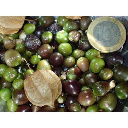 Niska, rozłożysta roślina jednoroczna o ścielących się pędach, drobnych kwiatach i bardzo małych owocach. Dziko rośnie w całej Azji południowo-wschodniej, ale tutaj sprzedawana odmiana jest z Japonii. Owoce to malutki fioletowe jagody otoczone niewielkimi, rozdętymi kielichami kwiatowymi. W smaku są kwaskowate. Gatunku tego nie należy mylić z Physalis angulata (również czasem opisywanej pod synonimiczną nazwa Physalis minima) - to dwa zupełnie różne gatunki. Rzadkość. Nasiona nie wymagają żadnych zabiegów przedsiewnych. Należy siać je powierzchniowo. Uprawiać w podobny sposób jak pomidory. Opakowanie zawiera 20 świeżych nasion.