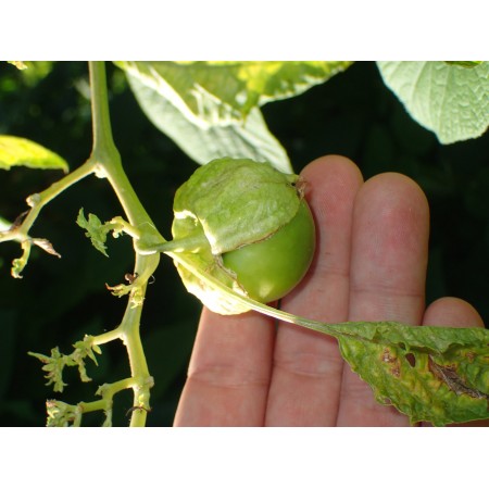 Nasionka zostały zebrane z jedynej naszej mieszańcowej rośliny. Powstały z kwiatów zapylonych przez owady. Jest to prawdopodobnie wynik samozapylenia (F2) lub krzyżówka wsteczna z Physalis longifolia (BC1).
