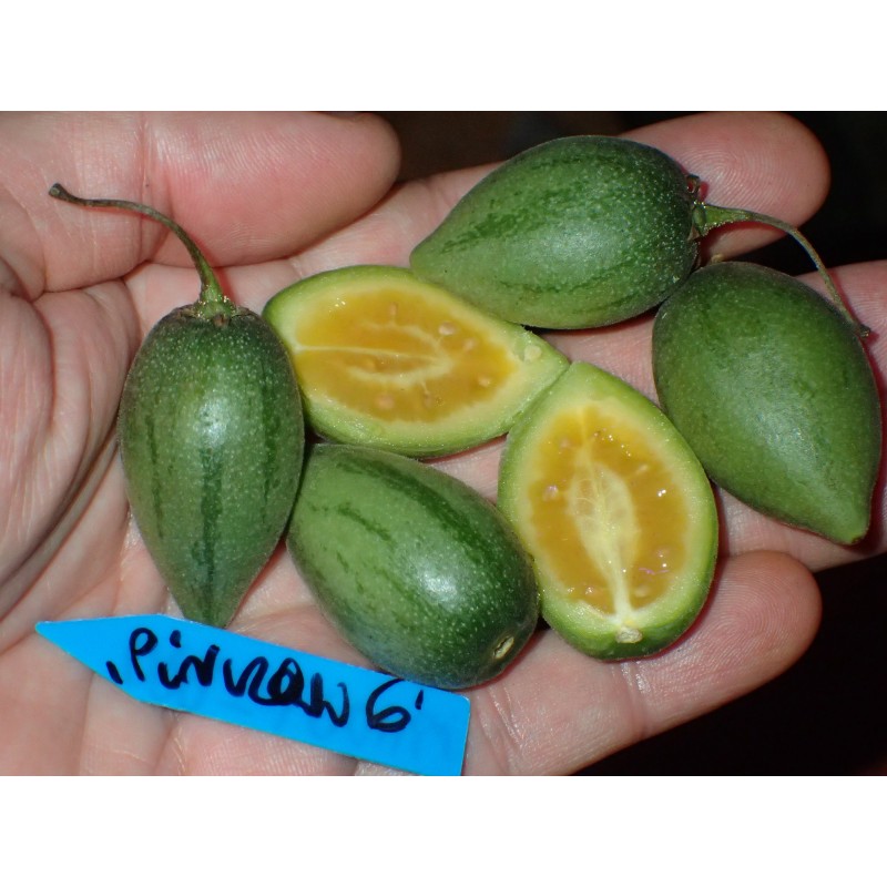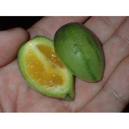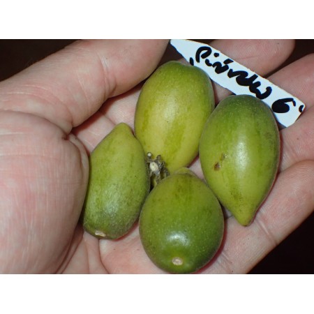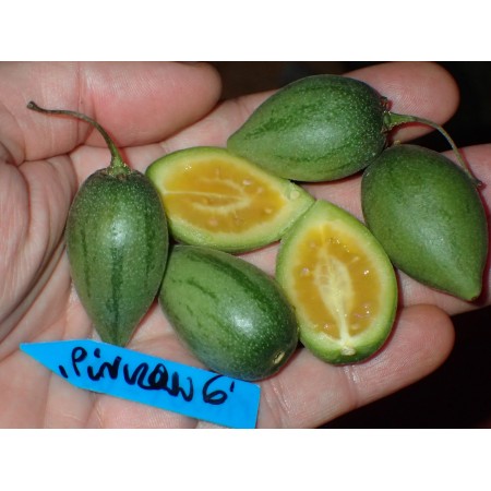 Są to nasiona zebrane z jednej z naszych mieszańców pomidorów drzewiastych - Hardy Tamarillo's - o nazwie roboczej 'Pinczow 6', która jest najbardziiej mrozoodporna (prawdopodobnie nawet bardziej niż czyste Solanum corymbiflorum). Nasiona są zapylane w warunkach otwartych (nie ręcznie) - zbierane z odmiany 'Pinczow 6' i zapylane przez dowolną inną mieszańcową odmianę BC1 z 'Grupy Pinczow' [(Solanum corymbiflorum x diploconos) x corymbiflorum] lub odmianę z grupy 'Iwona' [(Solanum corymbiflorum x diploconos) x diploconos] (BC1), czy odmianę 'Lynn' (Solanum corymbiflorum x diploconos) F1 - dawca pyłku nie jest dokładnie znany, ponieważ kwiaty zostały zapylone przez trzmiele. Niektóre nasiona mogą mieć jednego rodzica płci męskiej, a inne innego rodzica płci męskiej, ponieważ nasiona są usuwane z kilku owoców. Odmiana ta jest prawdopodobnie odporna na mrozy, ale nie wiadomo jeszcze jak silne (sprawdziliśmy m. in. tą odmianę i wiemy, że zimuje w szklarni nieogrzewanej, jeśli korzenie są grubo zamulczowane - góra przemarza, ale roślina odbija od korzeni - w ten sposób przezimowały nam rośliny nawet zimę 2023/24, kiedy mrozy były bardzo silne). Owoce dojrzewają po około 6 miesiącach od zapylenia (w lutym), ale mogą dojrzewać nawet w chłodnej piwnicy jesienią/zimą w temperaturze ok. 5 stopni C. Owoce żeńskiej odmiany rodzicielskiej są bardzo smaczne, o smaku przypominającym melon, prawie całkowicie pozbawione nieprzyjemnego posmaku. Rośliny wyhodowane z tych nasion mogą być różnorodne, ze względu na to, że najpewniejszy sposób rozmnażania odmian mieszańcowych Tamarillo jest sadzonkowanie. Ale rośliny wyhodowane z nasion mogą również dawać smaczne i wartościowe rośliny, ale prawdopodobnie tylko w pewnym procencie - nie wszystkie. Nasiona są PIERWSZY RAZ OFEROWANE NA SPRZEDAŻ. (jesteśmy JEDYNYM WŁAŚCICIELEM roślin macierzystych na ŚWIECIE). Nasiona powinny być wysiane powierzchniowo, w lekko wilgotne podłoże, w jasnym i ciepłym miejscu (np. na parapecie okiennym, przykryte przezroczystą folią, tak by miały nie za mokro i nie za sucho) - w takich warunkach łatwo kiełkują w ciągu około 1-1,5 miesiąca . Niektóre sadzonki mogą być chlorotyczne i zamierać w młodym wieku - takich sadzonek jest jakiś procent, więc jeśli kupisz nasiona, to Ty ponosisz ryzyko. Opakowanie 7 bardzo świeżych nasion (7 małych suchych nasion - NIE owoców i NIE roślin). Dostępnych jest tylko kilka pakietów. Dodamy, że cena jest dość wysoka, bo żeby wyhodować te mieszańce, musieliśmy się starać przez kilkanaście lat. ...jeśli chcesz zobaczyć więcej informacji na temat naszej hodowlii mieszańców Tamarillos, w Internecie dostępny jest nasz artykuł: Wojciech Maksymilian Szymański & Iwona Ziółkowska "Hybrids of Solanum corymbiflorum and S. diploconos(Solanaceae) – a hope for new commercial varieties of edible fruits" / "Híbridos de Solanum Corymbiflorum e S. diploconos (Solanaceae) – uma alternativa paranovas cultivares comerciais de frut as comestíveis" Vista do Híbridos de Solanum Corymbiflorum e S. diploconos (Solanaceae) – uma alternativa para novas cultivares comerciais de frutas comestíveis (udesc.br) https://www.revistas.udesc.br/index.php/agroveterinaria/article/view/21311/13799 Rev. Ciênc. Agrovet., Lages, SC, Brasil (ISSN 2238-1171) DOI: 10.5965/223811712042021342 Revista de Ciências Agroveterinárias 20(4): 2021 Universidade do Estado de Santa Catarina