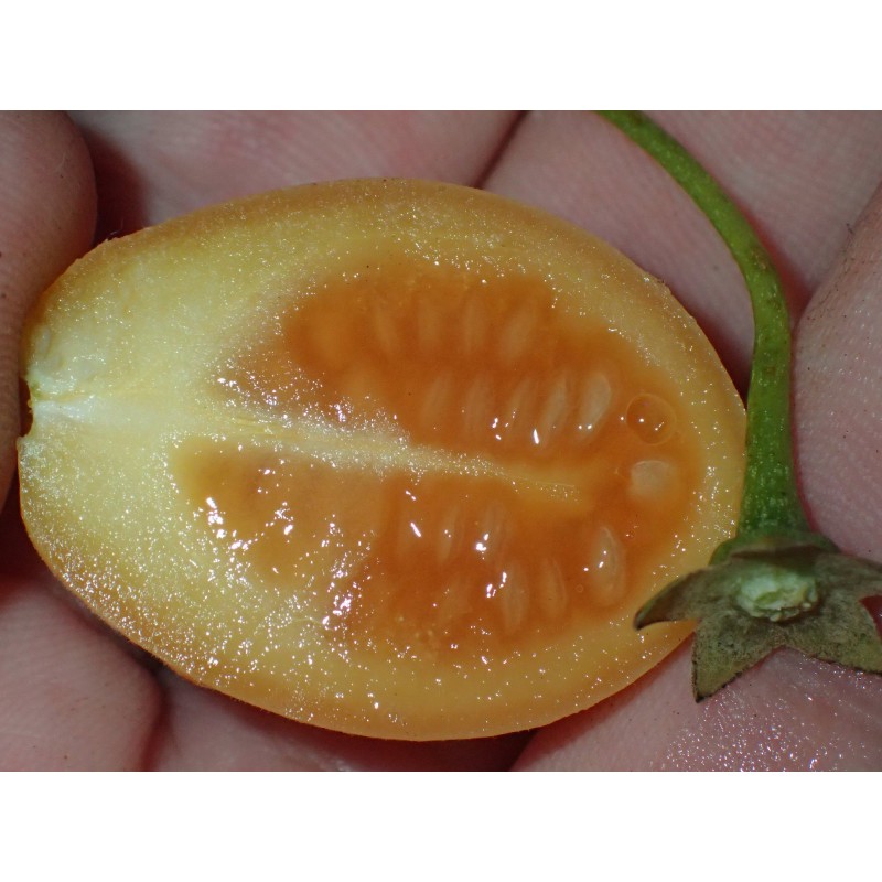 Guava tamarillo (Cyphomandra fragrans, syn. Solanum diploconos), zwana również „tamarillo o błyszczących liściach”. Pochodzi z południowej i południowo-wschodniej Brazylii (Minas Gerais, Espírito Santo, São Paulo, Rio de Janeiro, Paraná, Santa Catarina, Rio Grande do Sul) oraz sąsiedniej Argentyny i Paragwaju. Podejmowano próby jej uprawy jako drzewa owocowego w Nowej Zelandii. Ma bardzo ozdobne liście i bardzo gruby pień (około 6-12 cm średnicy w dolnej części). To niewielkie drzewo o parasolowatym kształcie górnych gałęzi może osiągnąć około 1,5-2,5 m (= 5-8 stóp) w średniej wielkości doniczkach (lub do 4 m = 13 stóp w naturze). Liście młodych roślin są głęboko klapowane. Starsze są całobrzegie. Mało kto wie, że ten gatunek jest również bardzo odporny na mróz [zimą 2016/17 przetrwał w mojej chłodnej piwnicy stałą temperaturę około (– 1) stopnia C (= 30 stopnia F) przez co najmniej 1,5 miesiąca i krótkie okresy z niższymi temperaturami – nie jestem pewien, ale prawdopodobnie – do około (-5) – (-8) stopnia C = 18-23 stopnia F]. Chociaż rośliny zostały uszkodzone przez mróz, to 3 (ze wszystkich 4, które miałem) przetrwały tę zimę i odrosły po przycięciu (skróceniu obumarłych pędów) wiosną. Te rośliny muszą mieć całkowicie suchą glebę zimą, aby mogły przetrwać mróz. Jest jednak bardzo odporny na suszę i może przetrwać 4 miesiące bez podlewania w swoim rodzimym zasięgu, a nawet dłuższą suszę, jeśli jest przechowywany w niskich temperaturach w pomieszczeniu (w chłodnej piwnicy itp.) zimą w strefach umiarkowanych (moje rośliny przetrwały ponad 6 miesięcy w stanie bezlistnym). Jest również odporny na pewien cień i wyleganie w wodzie (jeśli jest uprawiany w doniczkach). Jako roślina doniczkowa może być nazywana „żelazną rośliną” – jest w stanie przetrwać niemal każde niekorzystne warunki. W chłodnych rejonach gatunek ten zrzuca liście. Zimą liście i cienkie gałązki zamierają. Roślina tworzy bardzo ozdobne kwiaty, a następnie bardzo liczne, drobne (ok. 2-4 cm), jajowate, żółte, pyszne owoce o egzotycznym aromacie (w smaku przypominają marakuję, ale zazwyczaj są kwaśne). Tamarillo guawa można łatwo rozmnażać z nasion (wysiew powierzchniowy) lub sadzonek (z piętką). Gatunek ten jest bardzo trudny do nabycia i rzadki w stanie dzikim – został sklasyfikowany jako „bliski zagrożenia” na Czerwonej Liście Gatunków Zagrożonych IUCN (2011). Gatunek ten został przez nas wykorzystany do tworzenia mieszańców.. ...jeśli chcesz zobaczyć więcej informacji na temat naszej hodowlii mieszańców Tamarillos, w Internecie dostępny jest nasz artykuł: Wojciech Maksymilian Szymański & Iwona Ziółkowska "Hybrids of Solanum corymbiflorum and S. diploconos(Solanaceae) – a hope for new commercial varieties of edible fruits" / "Híbridos de Solanum Corymbiflorum e S. diploconos (Solanaceae) – uma alternativa paranovas cultivares comerciais de frut as comestíveis" Vista do Híbridos de Solanum Corymbiflorum e S. diploconos (Solanaceae) – uma alternativa para novas cultivares comerciais de frutas comestíveis (udesc.br) https://www.revistas.udesc.br/index.php/agroveterinaria/article/view/21311/13799 Rev. Ciênc. Agrovet., Lages, SC, Brasil (ISSN 2238-1171) DOI: 10.5965/223811712042021342 Revista de Ciências Agroveterinárias 20(4): 2021 Universidade do Estado de Santa Catarina.