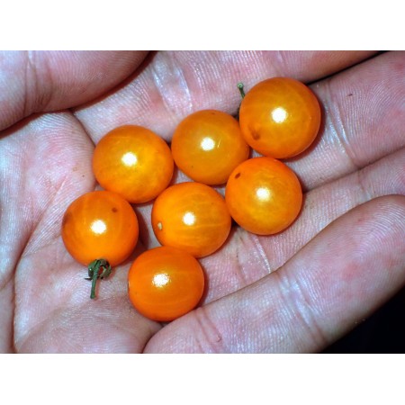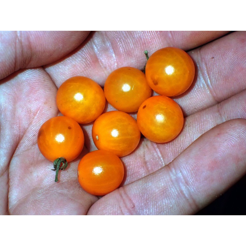 Ta odmiana powstała ze skrzyżowania dzikiego pomidora porzeczkowego (Solanum pimpinellifolium) z mieszańcem, który stworzyliśmy z dwóch innych gatunków dzikich pomidorów – pomidora peruwiańskiego (S. peruvianum) i pomidora Pennellii (S. pennellii). Wysialiśmy już nasiona F2, a otrzymane rośliny były bardzo wyrównane, ale nie wiemy, jakie będą rezultaty w kolejnych pokoleniach (nieznana jest stabilność tej odmiany). Roślina jest samo-zgodna, więc do owocowania wystarczy pojedyncza roślina. Owoce tej odmiany mają wielkość około 1-1,5 cm (0,4-0,6 cala). Cechą charakterystyczną jest obecność przylistków w niektórych kwiatostanach – cecha pochodząca od pomidora peruwiańskiego i pomidora Pennellii. Odmiana „Little Victor” (czyli po polsku 'Wikuś') ma 100% genów pochodzących od pomidorów dzikich. Oferujemy nasiona, z których wyrosną rośliny pokolenia F2. Zdjęcia przedstawiają rośliny F1 – te, które wytworzyły nasiona F2. Rośliny F1 były dość odporne na zarazę ziemniaczaną, ale nie do końca. Nie wiemy, jakie będą rezultaty w kolejnych pokoleniach. Stworzenie tej odmiany wymagało dużo pracy i czasu. Smak owoców tej odmiany jest podobny do smaku zwykłych pomidorów, ale lepszy. Jeśli pasjonujesz się uprawą nietypowych odmian pomidorów, dobrze trafiłeś. To nasze nowe dzieło – jesteśmy jedynymi sprzedawcami tej odmiany. Opakowanie zawiera 12 świeżych nasion.