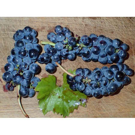 Pnącze dwupienne, które mimo, że pochodzi z południa USA, bez problemu rośnie i zimuje w naszym ogrodzie w Polsce, w strefie 6/7. Owoce zebrane w niewielkie gęste grona, słodko-kwaśne, o bardzo ciemnym soku. Nadają się one na przetwory (galaretki, konfitury, soki), na wino, lub mogą być suszone jak rodzynki. Mają bardzo przyjemny aromat, inny niż zwykłe winogrona. Rzadkość w handlu w Europie. Nasiona należy wysiać jesienią w chłodnej piwnicy do doniczek lub stratyfikować w wilgotnym podłożu w lodówce. W sprzedaży pakiet 25 świeżych nasion (zebranych we wrześniu 2025).