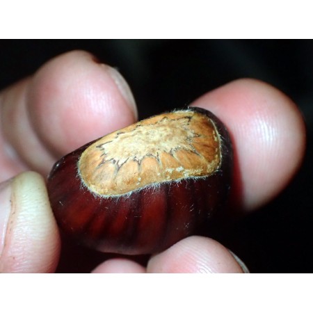 Rzadko spotykana w uprawie hybryda kasztana europejskiego (C. sativa) i amerykańskiego kasztana niskiego (C. pumila). Orzechy są średniej wielkości, smaczne, zebrane w bardzo dużych okrywach. Dojrzewa w końcu września / początku października. Drzewko niewysokie, które owocuje po jedynie kilku latach z siewu. Nasiona należy wysiać od razu po otrzymaniu w chłodnej piwnicy lub na zewnątrz (i miejsce siewu okryć) lub stratyfikować w lekko wilgotnym torfowcu przez zimę i posiać wiosną. W sprzedaży pakiet 5 nasion (żywotnych, niewysuszonych). Mamy niewiele takich pakietów, także zachęcamy do zamówienia puki są. Jeśli chcesz zamówić kasztany (ten lub inne taksony), sprawdź przepisy dotyczące Swojego kraju (możemy je wysłać poza EU, ale tylko na ryzyko kupującego, dlatego lepiej upewnij się, czy import tych nasion do Twojego kraju nie jest zakazany).